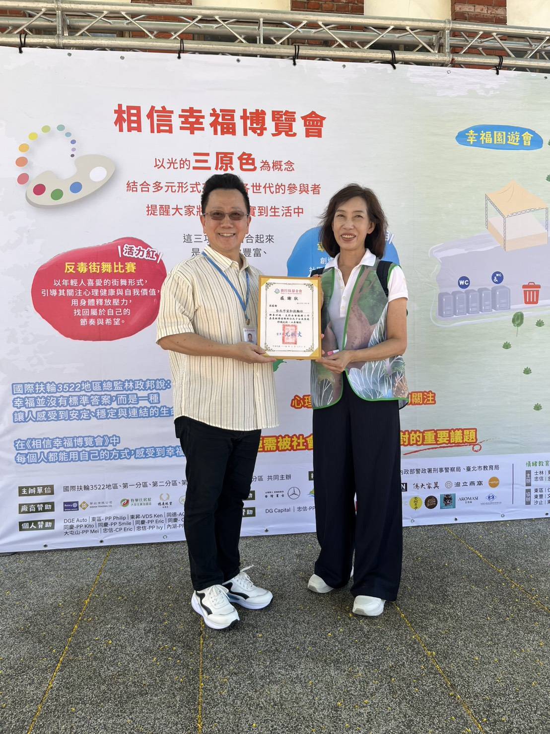 特別感謝安和扶輪社與尤姵文董事長的用心安排與溫暖款待,當天也致贈感謝狀給 Vicky 社長。